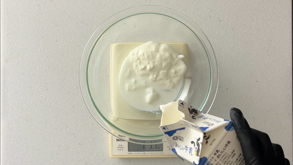 耐熱ボウルに「はちみつ、マヨネーズ、ヨーグルト、牛乳」を入れ、電子レンジで加熱して38~40℃程度に温める(目安は500W20秒)。