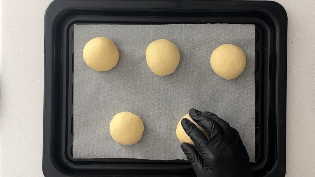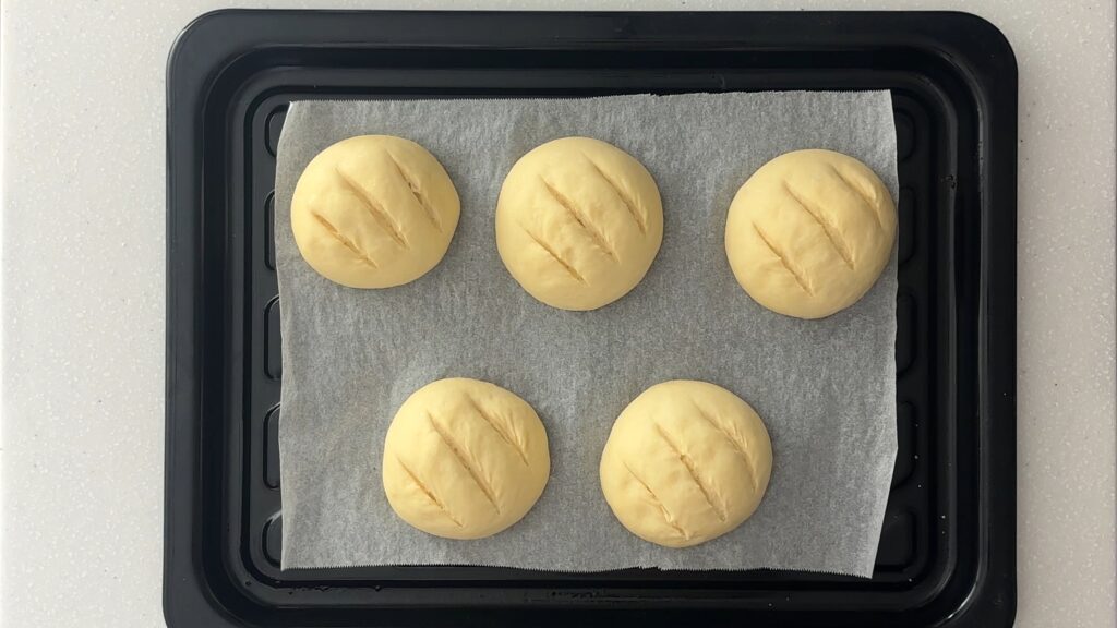 オーブンの発酵機能40℃で15分寝かせたら、天板を取り出して210℃の予熱を開始する。